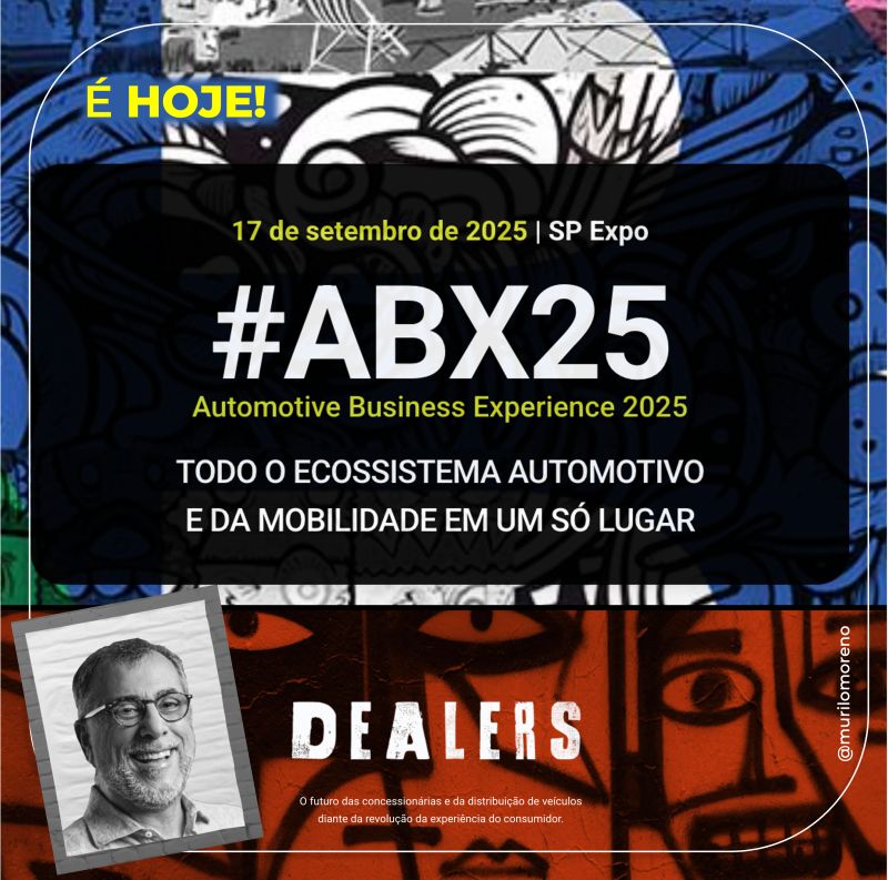 Pois esse é um dos temas que vou moderar no ABX25, conversando com Marcelo Ciardi Franciulli, da Fenabrave, J. R. Caporal e Geraldo V., da Auto Avaliar e Fabio Braga, da MegaDealer Network Development.