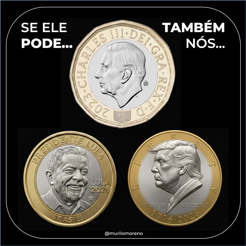 "Mas Murilo, o rei é rei, ele fica até morrer. O presidente, não..." Sim, verdade. Mas um rei pode falecer em menos tempo do que um mandato presidencial. E a minha principal questão é como a gente torce o nariz facilmente contra aquilo que é convencional, tradicional. O que impediria do Trump fazer um concurso e sortear qualquer americano vivo pra aparecer na moeda? Isso seria mais ou menos inapropriado do que ter a imagem dele no dólar? Por que é certo ou errado ter pessoas vivas no dinheiro que circula?