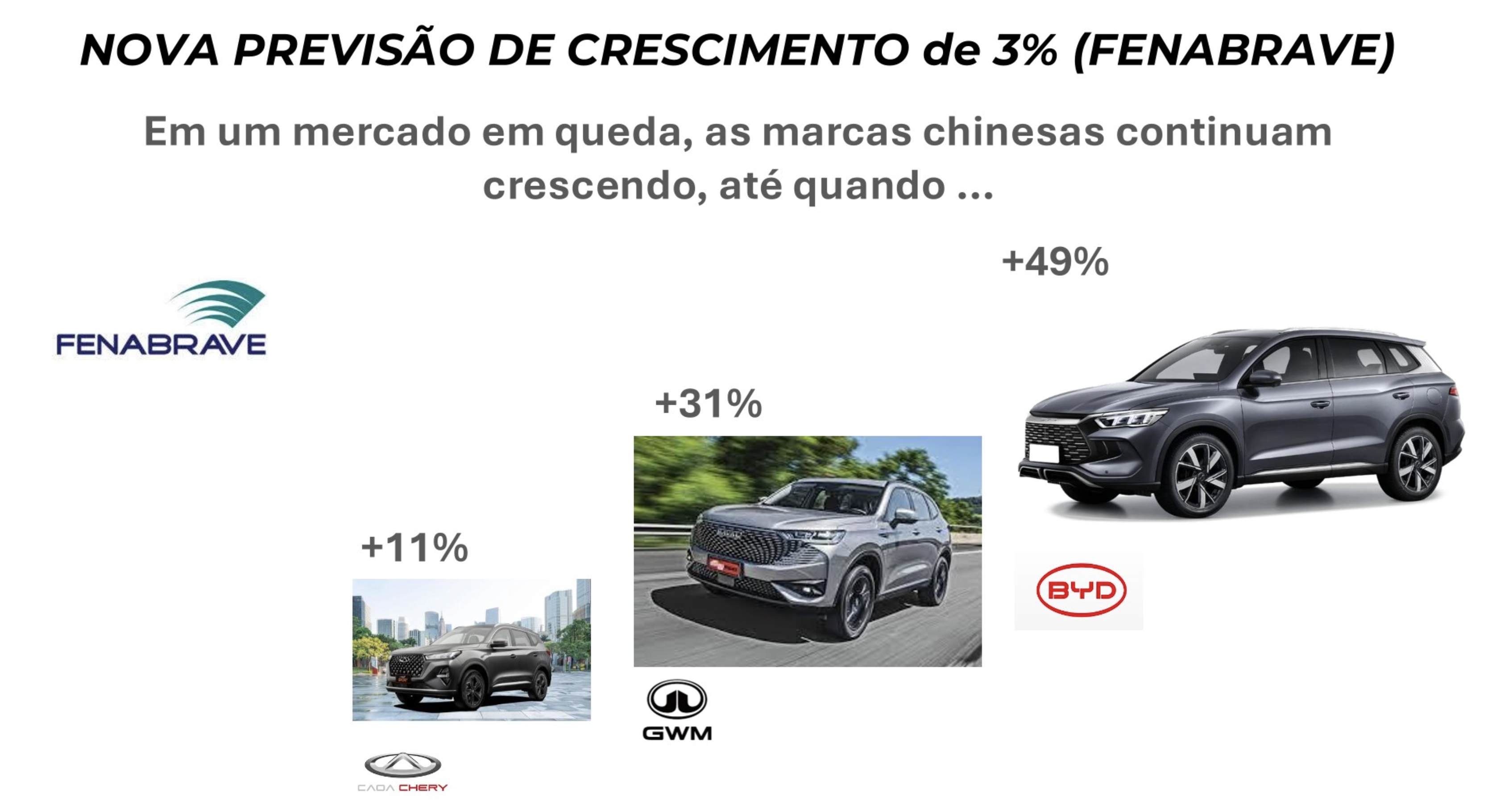 Por outro lado, as marcas chinesas seguem em expansão na comparação com o mesmo período de 2024: