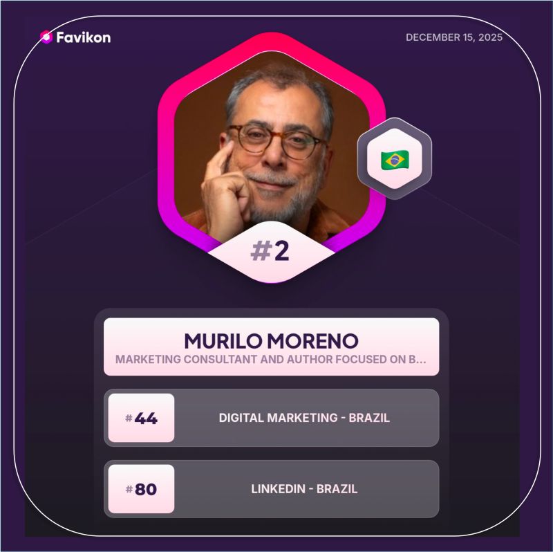 Sou o influencer número 2, na área de marketing digital, aqui no LinkedIn, de acordo com o Favikon. Nem acredito, mas só posso agradecer você que me acompanha diariamente nos meus posts e comentários.
