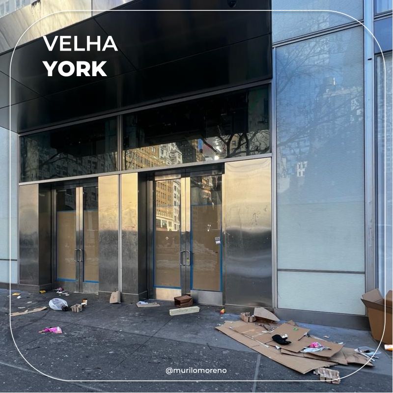 Uma loja fechada na rua que já teve o mais caro aluguel do mundo, e que as empresas brigavam para colocar sua cara. Pra piorar, os papelões e o lixo na porta são sobras de algum mendigo que deve ter dormido por ali.