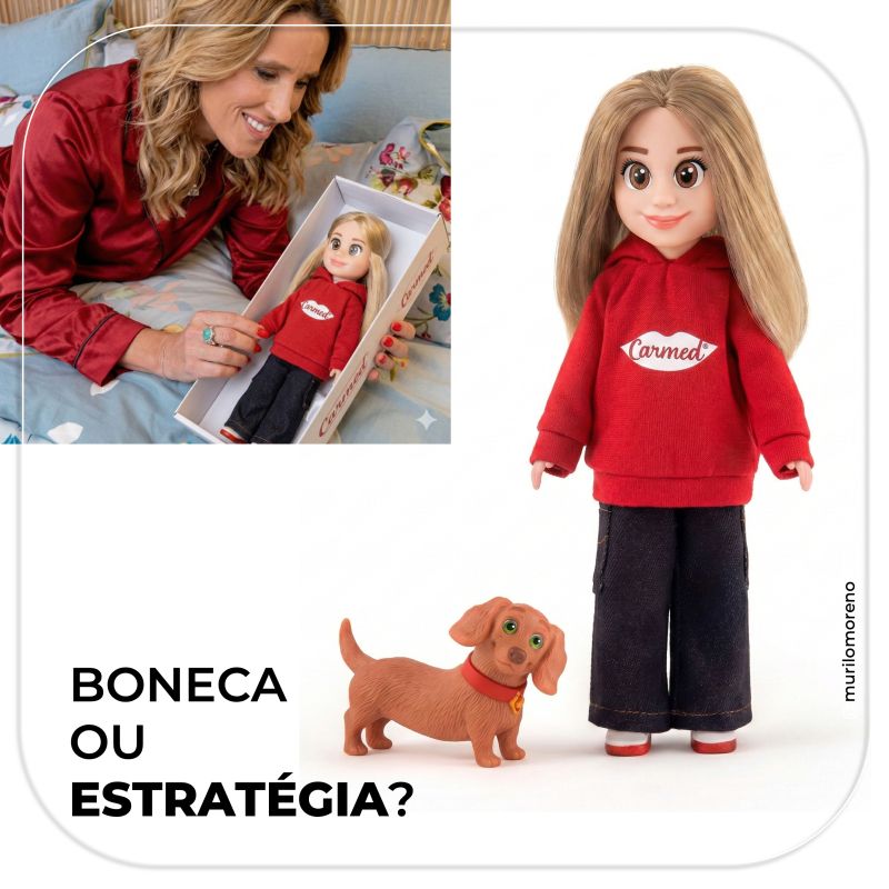 A boneca Carla e seu cachorrinho Carmedinho só chegam em abril nas lojas, mas, como uma boa influencer, já virou tema de post e divulgação nas redes sociais. Esse, inclusive, é um ponto que os Felmanas vêm sempre nos ensinando: O importante não é o produto na rua e sim a comunicação de que ele vai chegar. Fizeram isso com Carmed Coca Cola, que já era notícia meses antes de pousar nas farmácias. Ensinam que o fato em si é pouco importante para a construção da marca. O que vale é saber da novidade. Nada mais acertado, em tempos de internet e IA.